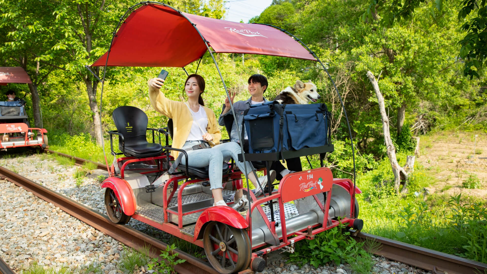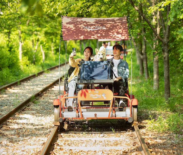 - 位于京畿道加平的加平铁轨自行车,坐落于可感受加平魅力的加平五日集市、松子村市场旁。