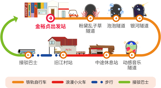 乘坐完铁轨自行车后,您可以乘坐穿梭巴士方便地返回出发地金裕贞站。